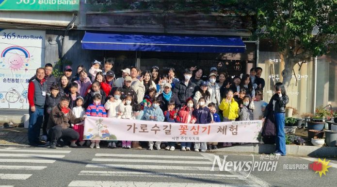 뉴스펀치 김길룡 기자 | 순천시 서면 주민자치회는 지난 29일 서면 강청길 일원 가로수길에서 관내 어린이와 가족이 함께하는 ‘아름다운 거리 조성 가로수 꽃심기 행사’를 가졌다고 밝혔다.