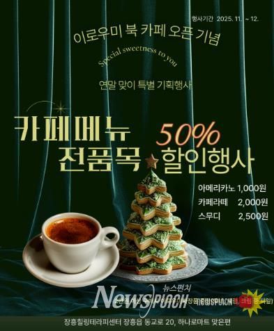 뉴스펀치 김길룡 기자 | 장흥힐링테라피센터는 최근 오픈한 ‘이로우미 북 카페’를 기념하고 다가오는 연말을 맞아 특별 할인 기획 행사를 진행한다고 밝혔다.