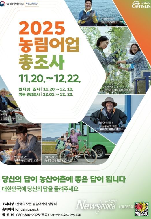 뉴스펀치 김길룡 기자 | 전남 무안군은 12월 2일부터 12월 22일까지 2025 농림어업총조사 방문면접조사를 실시한다.