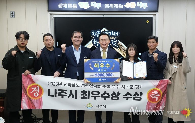 뉴스펀치 김길룡 기자 | 전라남도 나주시는 민선 8기 출범 후 공격적인 해외시장 개척과 현지 판촉 전략을 바탕으로 전라남도 농수산식품 수출 우수 시군 평가에서 ‘최우수상’을 수상하며 3년 연속 수출 도시 위상을 굳혔다고 2일 밝혔다.