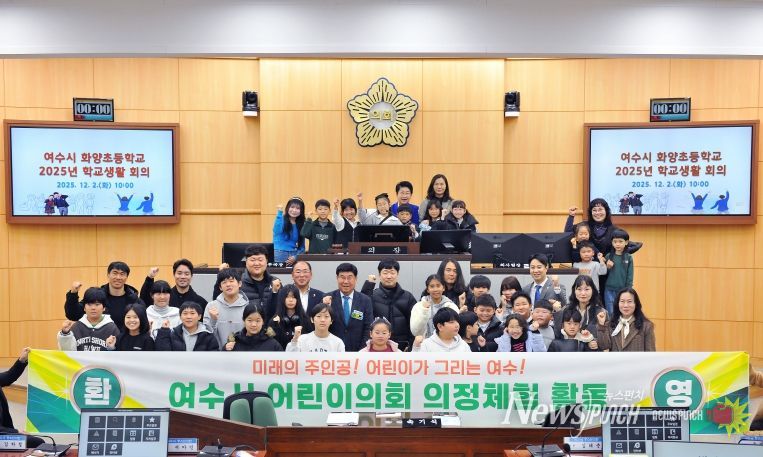 뉴스펀치 김길룡 기자 | 여수시의회는 12월 2일, 화양초등학교 학생들을 의회로 초청해 지방의회의 기능과 역할을 직접 경험해보는 ‘어린이의회 의정체험 프로그램’을 운영했다.