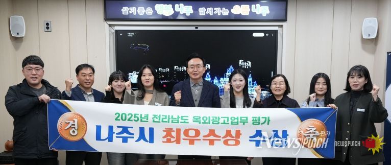뉴스펀치 김길룡 기자 | 전라남도 나주시가 불법광고물 정비 강화, 건전한 광고문화 확산, 폐현수막 재활용체계 구축 등 전방위적인 도시환경 개선 노력을 인정받아 ‘2025년 전라남도 옥외광고업무 평가’에서 ‘최우수상’을 수상했다.