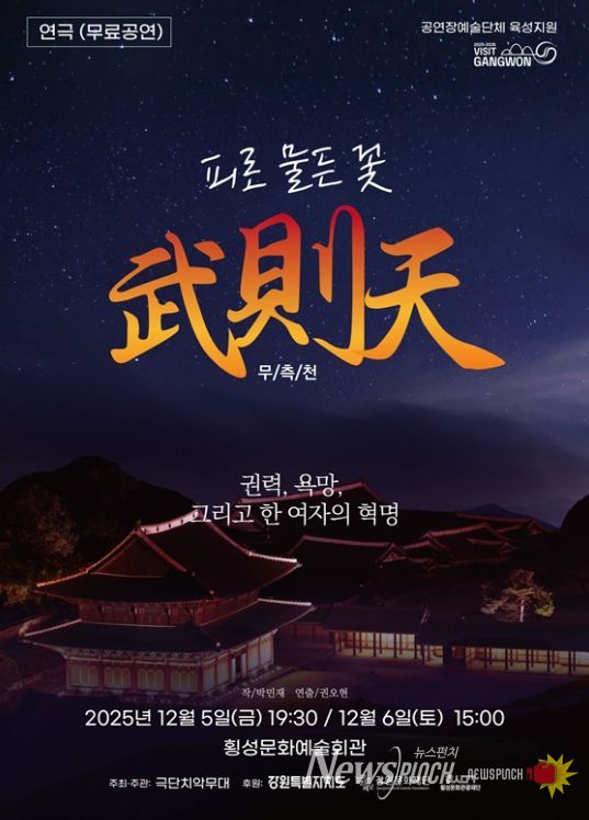 뉴스펀치 김길룡 기자 | (재)횡성문화관광재단과 극단 치악무대가 신작 연극 '무측천-피로 물든 꽃'을 오는 5일 저녁 7시 30분과 6일 오후 3시, 이틀간 진행한다고 밝혔다.