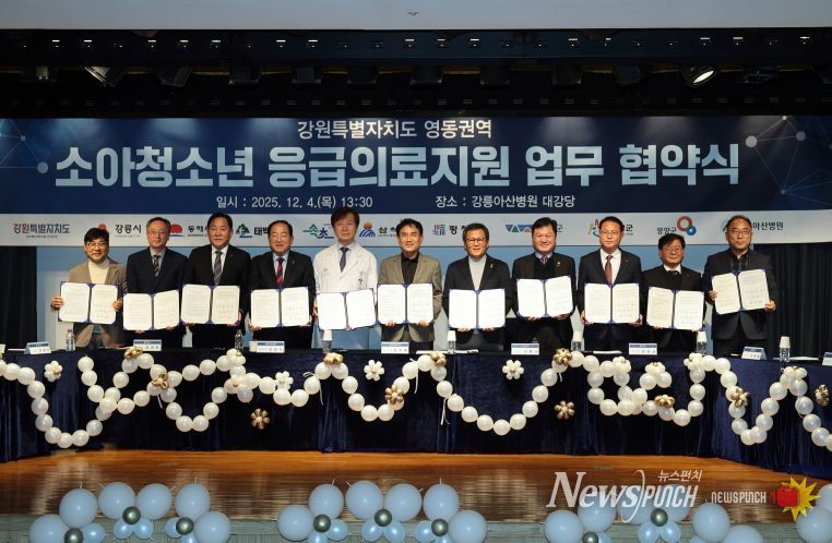 뉴스펀치 김길룡 기자 | 강릉시는 영동생활권의 안정적인 소아청소년 응급의료 체계 구축을 위해 강원특별자치도, 영동생활권 9개 시군(강릉, 동해, 태백, 속초, 삼척, 평창, 정선, 고성, 양양) 및 강릉아산병원과 4일 강릉아산병원에서 업무협약을 체결했다.
