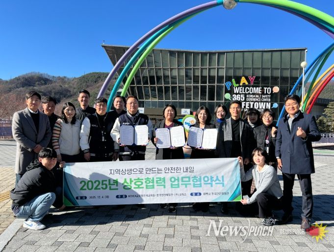 뉴스펀치 김길룡 기자 | 태백시는 한국안전체험관이 지난 4일 체험관 일원에서 KOICA글로벌인재교육원 및 ㈜코웍스와 ‘코이카 해외봉사단 안전체험 및 글로벌 안전교육 상생 모델 구축’을 위한 업무협약(MOU)을 체결했다고 밝혔다.