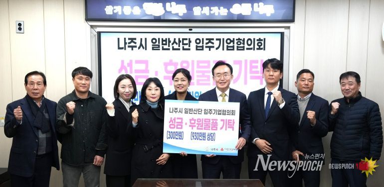 뉴스펀치 김길룡 기자 | 전라남도 나주시는 지난 3일 나주 일반산단 입주기업협의회가 연말연시를 맞아 지역 내 취약계층 지원을 위해 ‘희망 2026 나눔 캠페인 성금’ 300만 원과 자체 생산한 식료품 960만 원 상당 등 총 1260만 원을 기탁했다고 밝혔다.