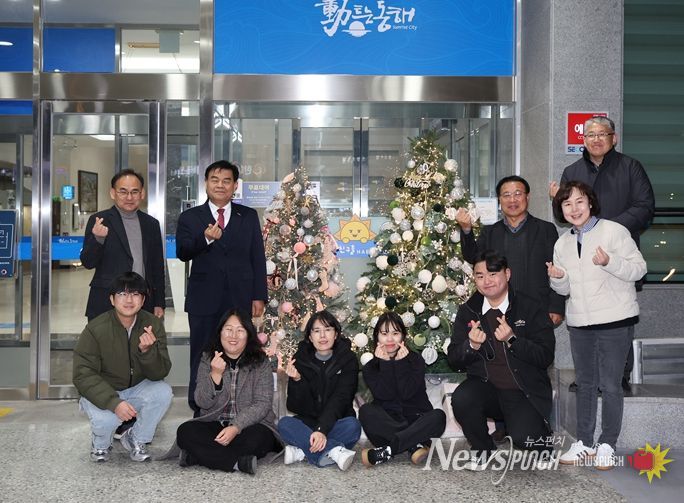 뉴스펀치 김길룡 기자 | 동해시청 선교회가 매년 12월 성탄절을 앞두고 동해시청과 동해시의회에 크리스마스트리를 설치해 시민들에게 따뜻한 감동을 전하고 있다.