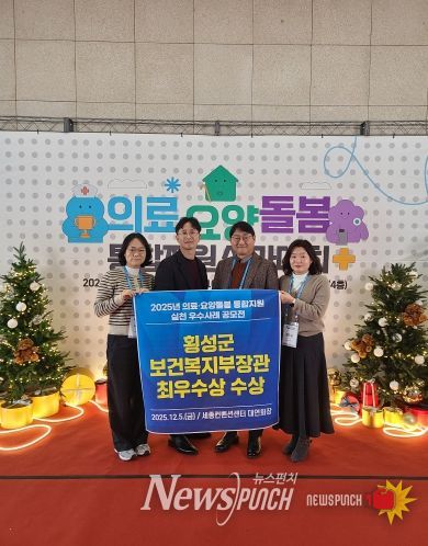 뉴스펀치 김길룡 기자 | 횡성군은 한국보건복지인재원이 주관한 ‘2025년 의료요양돌봄 통합지원 실천 우수사례 공모전’에서 '보건소 협업을 통한 통합돌봄 선순환 구축 사례'로 최우수상(보건복지부장관상)에 선정됐다고 밝혔다.
