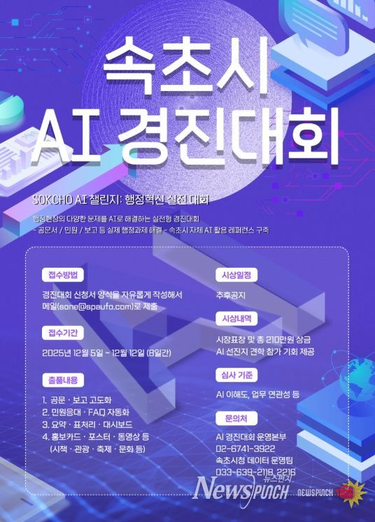 속초시는 이러한 성과를 시정 전반으로 확산하기 위해 12월 12일까지 ‘속초시 AI 경진대회(SOKCHO AI 챌린지)’를 개최한다.