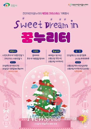 뉴스펀치 김길룡 기자 | 천안어린이꿈누리터(관장 조삼혁)는 오는 12월 25일부터 28일까지 제5회 크리스마스 기획행사‘Sweet Dream in 꿈누리터’를 진행한다고 밝혔다.
