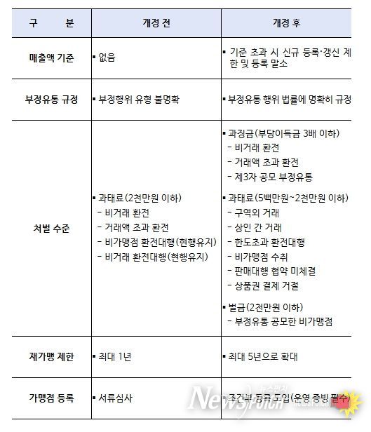 가맹점 관리체계는 부정등록을 예방하고 시장 감시를 강화하는 방향으로 개편된다. 신규 가맹점은 먼저 ‘조건부 등록’으로 임시 등록되며, 이후 30일 이내에 실제 운영을 확인할 수 있는 서류를 제출해야 정식 등록이 확정된다. 이를 제출하지 않을 경우 등록이 취소된다. 또한 가맹점 등록 현황을 중기부 누리집 등을 통해 투명하게 공개한다.