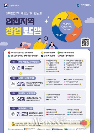 이번 공동 제작에는 센터를 비롯해 ▲소상공인진흥공단 인천북부센터, ▲인천대학교 창업지원단, ▲인천신용보증재단 인천소상공인종합지원센터, ▲인천지식재산센터, ▲인천창조경제혁신센터 등 총 6개 기관이 참여해 창업 준비 단계부터 사업 추진 단계까지 필요한 정보를 하나의 흐름으로 정리한 로드맵을 완성했다.