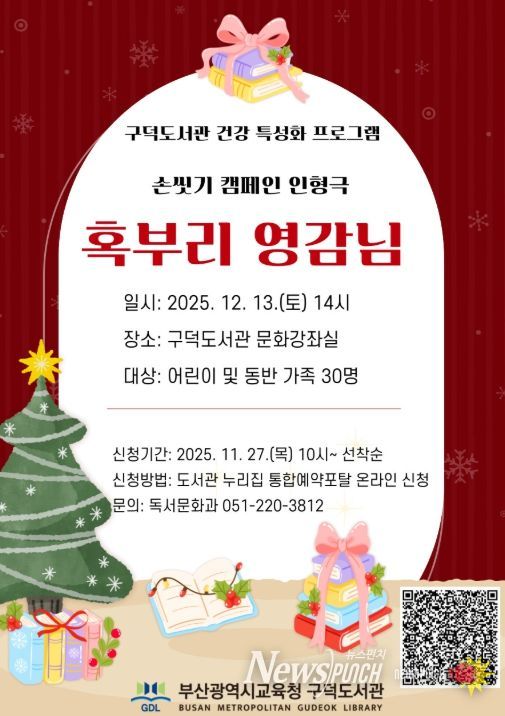 장말숙 구덕도서관장은 “이번 인형극이 어린이들에게 겨울철 위생 관리의 중요성을 자연스럽게 인식하는 계기가 되길 바란다”고 말했다.
