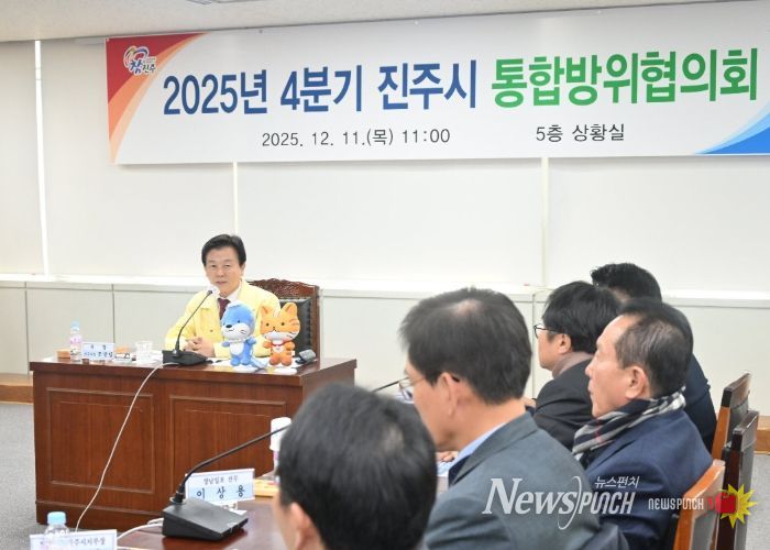뉴스펀치 김길룡 기자 | 진주시통합방위협의회는 11일 오전 시청 5층 상황실에서 통합방위 위원 20여 명이 참석한 가운데 ‘2025년 4분기 진주시 통합방위회의’를 개최했다.