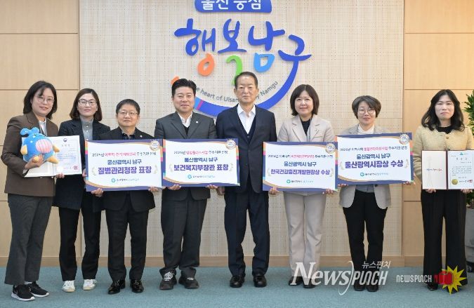 뉴스펀치 김길룡 기자 | 울산 남구보건소가 지역주민의 건강증진과 예방중심의 보건서비스의 탁월한 성과를 인정받아 △영양플러스사업 △아토피·천식예방관리사업 △비만예방관리사업 △통합건강증진사업에서 보건복지부장관상을 비롯해 4개 분야 우수기관 표창을 수상했다.
