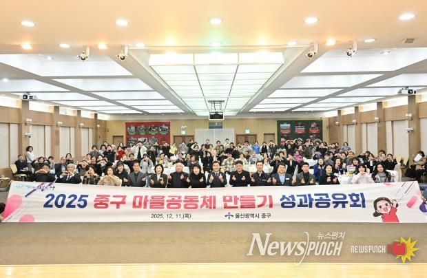뉴스펀치 김길룡 기자 | 울산 중구가 12월 11일 오후 2시 중구청 대회의실에서 ‘2025년 중구 마을공동체 만들기 사업 성과공유회’를 개최했다.