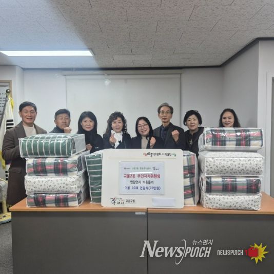 전미경 교문2동주민자치위원장은 “전달한 이불세트가 추운 겨울을 보내는 데 작은 보탬이 되길 바란다.”라며, “앞으로도 지역사회와 함께하는 나눔과 봉사를 꾸준히 이어가겠다.”라고 말했다.