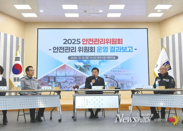 뉴스펀치 김길룡 기자 | 경주시는 15일 시청 대회의실에서 2025년 경주시 안전관리위원회를 열고 올해 안전관리위원회 운영 실적을 점검하는 한편, 2026년 재난안전 정책 방향에 대해 논의했다.