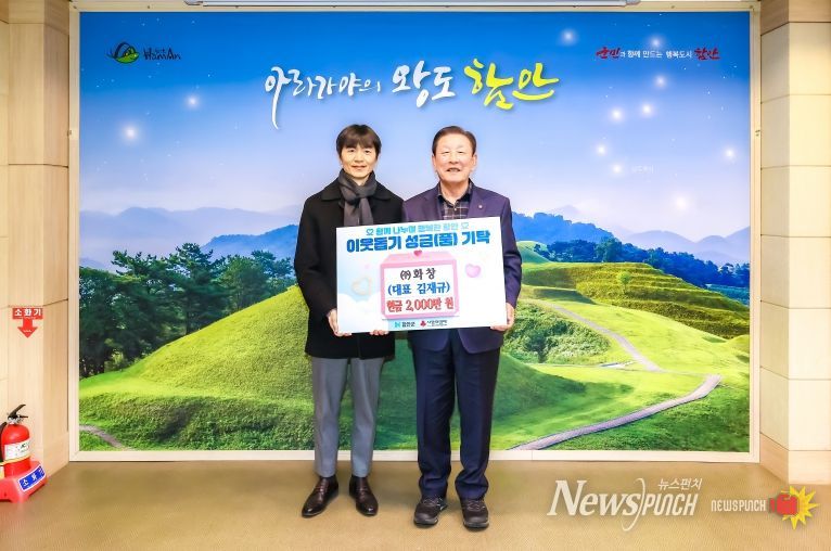 뉴스펀치 김길룡 기자 | 함안군은 ㈜화창(대표 김재규)에서 지역 내 어려운 이웃을 돕기 위해 ‘희망 2026 나눔 캠페인’에 동참해 성금 2000만 원을 기부하며 따뜻한 나눔을 실천했다고 16일 밝혔다.