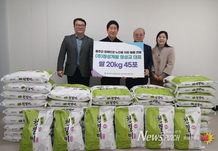 뉴스펀치 김길룡 기자 | 울주군시설관리공단(이사장 최인식) 중부장애인복지관은 12월 16일, ㈜정성개발(대표 정성교)로부터 백미 20kg 45포를 후원받아 전달식을 진행했다.