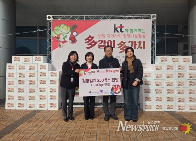 뉴스펀치 김길룡 기자 | 지난 12일, 부산 동구청 광장에서 KT부산경남광역본부가 주최하고, 부산사회공헌정보센터 및 부산광역푸드뱅크가 주관한 'KT와 함께하는 2025 연말 지역사회 후원 김장 나눔활동 ‘多같이 多가치’' 행사가 따뜻한 분위기 속에 진행됐다.