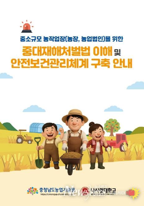 뉴스펀치 김길룡 기자 | 충남도 농업기술원은 농업 분야 특성을 반영한 ‘중대재해처벌법 이해 및 안전보건관리체계 구축 안내서’를 제작해 농업현장에 보급했다고 17일 밝혔다.