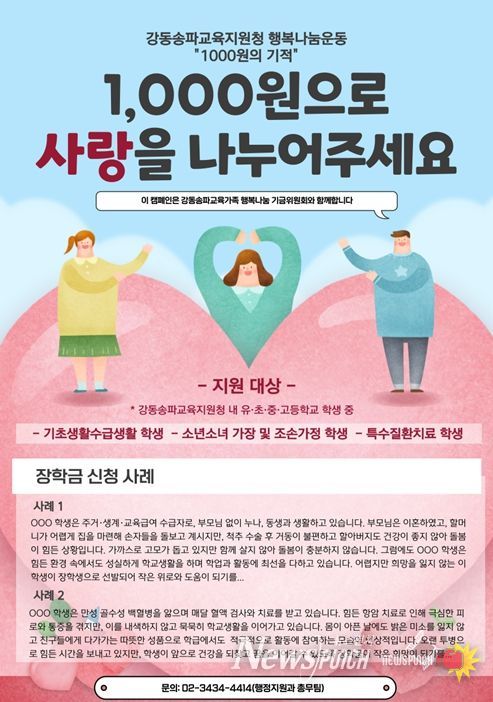 경제적 어려움으로 학업 및 생활에 어려움을 겪는 학생과 특수질환을 앓고 있는 관내 학생을 돕기 위해 마련됐으며, 강동송파교육지원청과 관내 학교 교직원들이 매월 급여에서 1,000원 이상을 자발적으로 기부해 기금을 조성하고 있다.