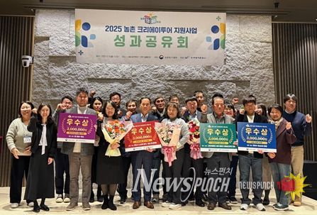 뉴스펀치 김길룡 기자 | 홍천 농촌문화터미널이 농림축산식품부 주관 ‘2025년 농촌 크리에이투어 지원사업 성과공유회’에서 지역 중간 지원 조직을 중심으로 한 사업 운영 체계 구축과 관광상품 개발 성과를 인정받아 자기 주도적 활동 부문 우수상을 받았다.