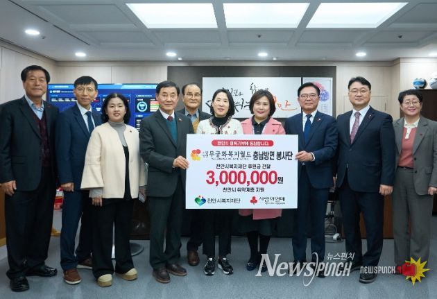 뉴스펀치 김길룡 기자 | (재)천안시복지재단은 지난 16일 ㈔무궁화복지월드 충남방면 봉사단이 취약계층을 위한 후원금 300만 원을 기탁했다고 밝혔다.