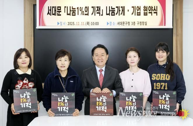 뉴스펀치 김완규 기자 | 서대문구는 최근 관내 소재한 서울호흡안심병원(167호), 데사유노 식당(168호), 풍성삼겹살(169호), 에츠헤어살롱 홍제점(170호)과 ‘서대문 나눔1%의 기적’협약을 체결했다고 17일 밝혔다.