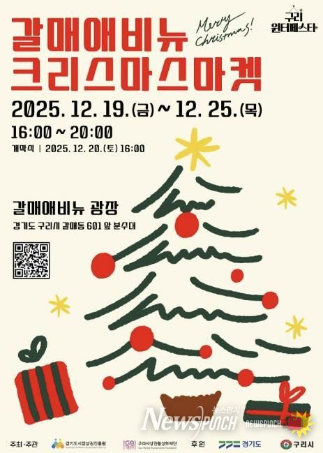 뉴스펀치 김길룡 기자 | 구리시상권활성화재단은 오는 12월 19일부터 25일까지 갈매 애비뉴 광장에서 ‘2025 구리윈터페스타–갈매애비뉴 크리스마스 마켓’을 개최한다고 밝혔다.