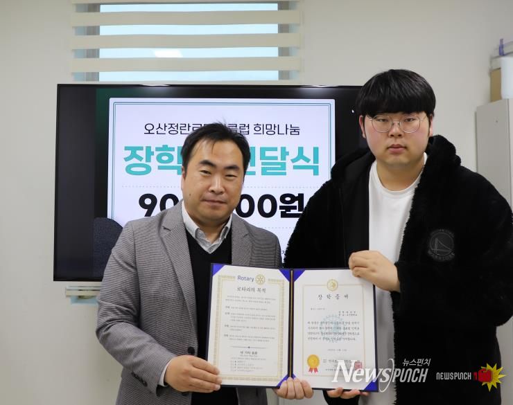뉴스펀치 김길룡 기자 | 오산장애인종합복지관은 지난 15일 오산정란로타리클럽으로부터 경제적 어려움을 겪는 장애가정 학생 지원을 위한 장학금 90만 원을 기탁받고 전달식을 개최했다고 밝혔다.