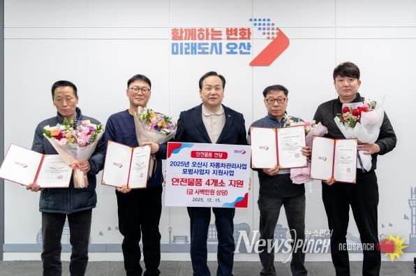 뉴스펀치 김길룡 기자 | 오산시는 지난 15일 지역 자동차관리산업의 건전한 발전과 시민 대상 서비스 품질 향상에 기여한 ‘2025년 오산시 자동차관리사업 모범사업자’ 4개 업체를 선정하고, 모범사업자 지정증을 전달했다.