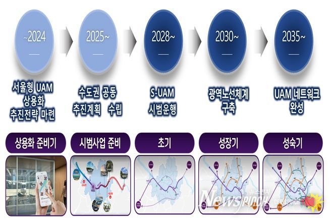 서울시는 향후 2~3년 내 국제 인증이 마무리될 것으로 보고 빠르게 기체를 도입, 즉시 조기 상용화할 수 있도록 작년 11월 ‘서울형 도심항공교통(S-UAM) 미래 비전’에서 내놓은 ‘실증~초기~성장~성숙’ 4단계 사업 전략을 ‘초기 상용화~성장~성숙’ 3단계로 재정립하고 속도감 있게 추진해 나갈 방침이다.