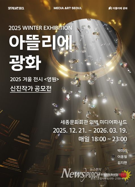 서울시는 21일부터 내년 3월 19일까지 매일 밤 ‘미디어아트 서울’ 전시플랫폼 3곳(아뜰리에 광화, 해치마당 미디어월, 서울로미디어캔버스)에서 겨울 전시를 무료로 선보인다. 해치마당 미디어월은 08시부터 22시까지, 나머지는 18시부터 23시까지 운영한다.