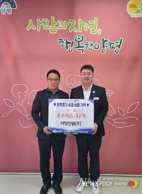 뉴스펀치 김길룡 기자 | 양평군 용문면은 지난 15일 대양건설(주)에서 겨울철 취약계층을 위해 사용해 달라며 온수매트 12개를 기부했다고 밝혔다.