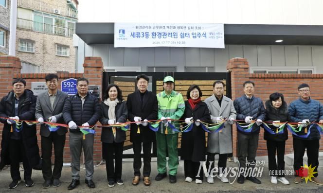 뉴스펀치 김길룡 기자 | 수원시 권선구 세류3동은 지난 17일 환경관리원의 근무환경 개선과 행복한 일터 조성을 위해 신축한 ‘세류3동 환경관리원 쉼터’ 입주식을 개최했다.