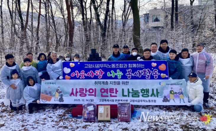 뉴스펀치 김길룡 기자 | 고양특례시는 지난 14일, 직장동아리‘한울봉사회’와‘고양시공무직노동조합’와 함께 지역 취약계층을 위한 겨울맞이 생필품·연탄 나눔 봉사활동을 실시했다고 밝혔다.