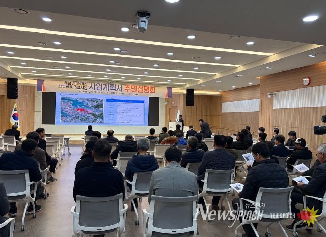 뉴스펀치 김길룡 기자 | 해남군은 16일 산이면·마산면 간척지 일원에서 추진 중인 산이·마산 햇빛공유 조성사업(산이2-1공구 재생에너지 집적화단지)의 사업계획 설명을 위한 주민설명회를 개최했다.