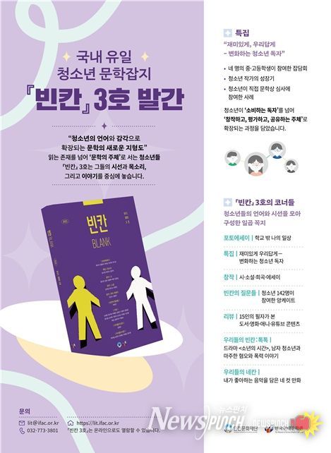뉴스펀치 김길룡 기자 | 인천문화재단 한국근대문학관은 국내 유일의 청소년 문학잡지 [빈칸] 3호를 발간했다.
