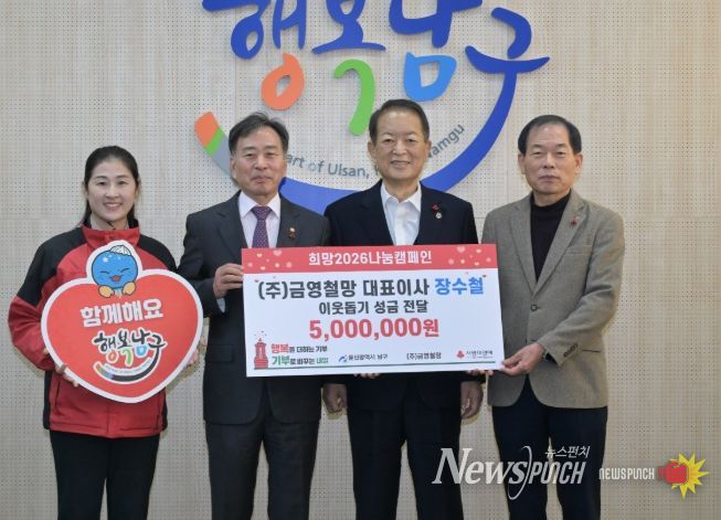 뉴스펀치 김길룡 기자 | 울산 남구는 17일 ㈜금영철망 장수철 대표이사가 남구청을 방문해 연말을 맞아 이웃돕기 성금 500만 원을 울산사회복지공동모금회에 지정 기탁했다.