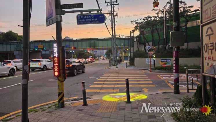 뉴스펀치 김완규 기자 | 서울 동대문구가 인공지능(AI) 기반 보행자 교통사고 예방 시스템을 주요 교차로와 통학로 등에 설치했다. 우회전 차량과 횡단 보행자 간 사고 위험을 줄이고, 과속과 정지선 위반을 현장에서 즉시 ‘계도’해 운전 습관을 바꾸겠다는 취지다.