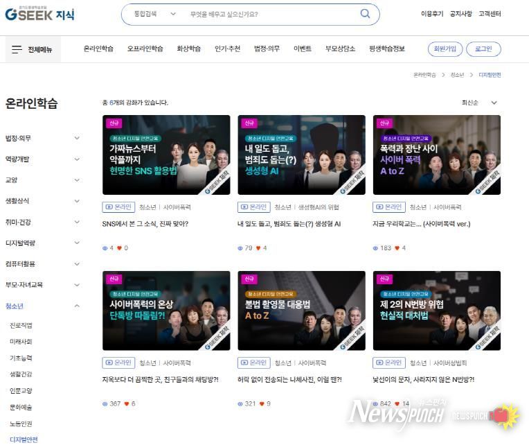 뉴스펀치 김길룡 기자 | 경기도는 청소년 디지털 범죄 대응을 위해 ‘청소년 디지털 안전교육 온라인 콘텐츠’를 제작하고 경기도 평생학습포털 ‘지식(GSEEK)’에 탑재했다.