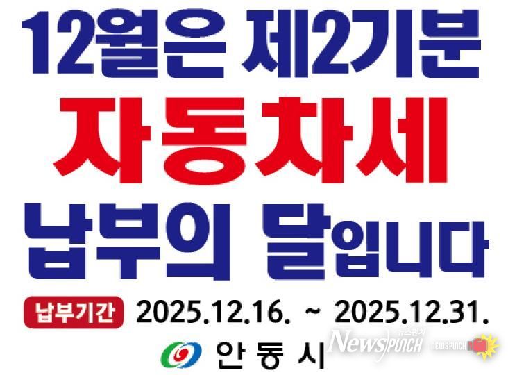 안동시 관계자는 “우편으로 발송된 고지서를 반드시 확인하시고 가산금, 차량 압류 등의 불이익이 발생하지 않도록 기한 내에 꼭 납부해 주시길 바란다”고 당부했다.