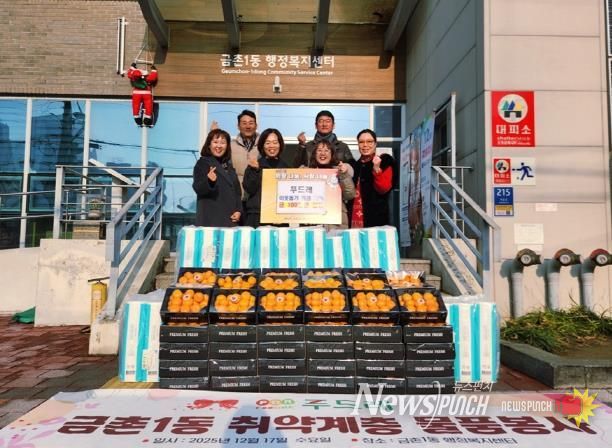 뉴스펀치 김길룡 기자 | 파주시 금촌1동은 지난 17일 ㈔한국외식업중앙회 파주시지부와 협력 단체인 ‘푸드레’로부터 100만 원 상당의 화장지와 귤을 기탁받았다고 밝혔다.