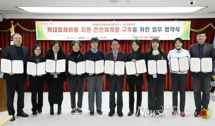 뉴스펀치 김완규 기자 | 서대문구는 최근 구청 기획상황실에서 ‘학대 피해아동 지원 안전체계망 구축을 위한 업무 협약식’을 개최했다고 18일 밝혔다.