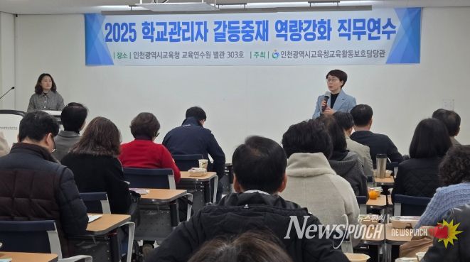 뉴스펀치 김길룡 기자 | 인천광역시교육청은 11월 25일부터 12월 17일까지 학교관리자의 갈등중재 역량 강화를 위해 ‘2025학년도 학교관리자 갈등중재 역량강화 직무연수’를 4회에 걸쳐 운영했다.