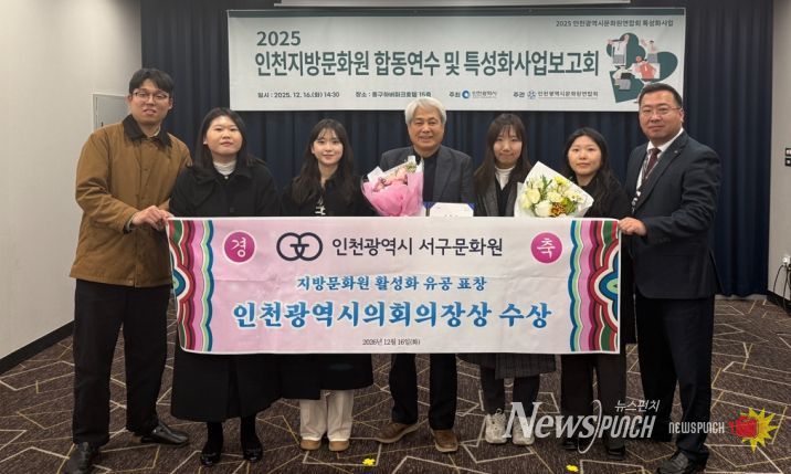 뉴스펀치 김길룡 기자 | 인천광역시 서구문화원(원장 정군섭)은 지난 16일 ‘2025년 인천지방문화원 합동연수’에서 지방문화원 활성화 유공 표창(인천광역시의회 의장상)을 수상했다.