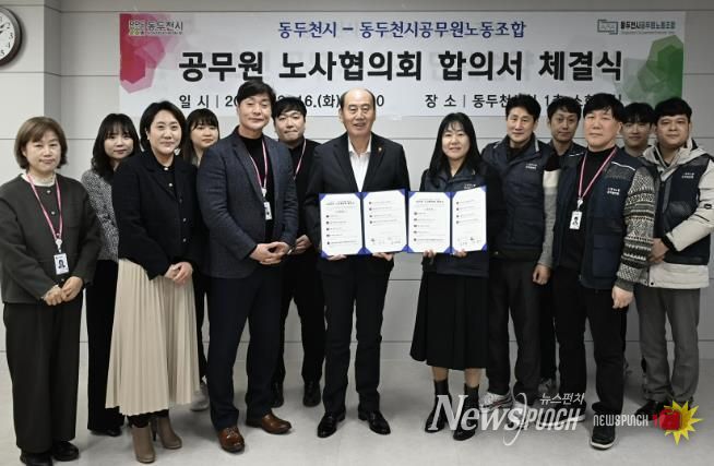 뉴스펀치 김길룡 기자 | 동두천시와 동두천시공무원노동조합은 지난 16일 동두천시청 1층 소회의실에서 공무원 노사협의회 합의서 체결식을 개최했다고 밝혔다.
