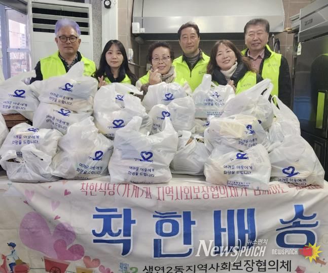 뉴스펀치 김길룡 기자 | 동두천시 생연2동 지역사회보장협의체는 지난 17일 추운 겨울철을 맞아 지역 내 어려운 이웃들을 위한 ‘착한배송’ 나눔 활동을 펼쳤다. 협의체 위원들은 취약가구를 직접 방문해 안부를 살피고, 정성껏 준비한 물품을 전달했다.